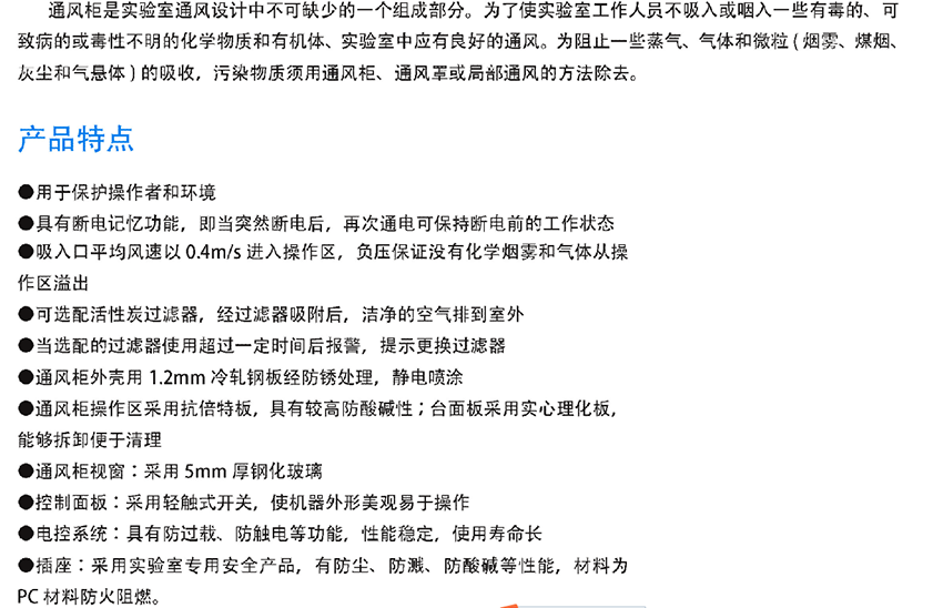 6、 功率: 800W本設(shè)備適用,適用于空調(diào)廠房超凈廠房的新型工藝設(shè)備,在電子、化工、機(jī)械、醫(yī)學(xué)等行業(yè),及大專院校,實(shí)驗(yàn)室也得到廣泛應(yīng)用。通風(fēng)柜在進(jìn)行具有潛在危險(xiǎn)或未知影響因素的實(shí)驗(yàn)操作,進(jìn)行產(chǎn)生易燃、易爆、易揮發(fā)的實(shí)驗(yàn)操作,進(jìn)行毒害品試驗(yàn)等實(shí)驗(yàn)操作。本設(shè)備可以用于保護(hù)操作人員和試驗(yàn)產(chǎn)品的試驗(yàn)過(guò)程中。