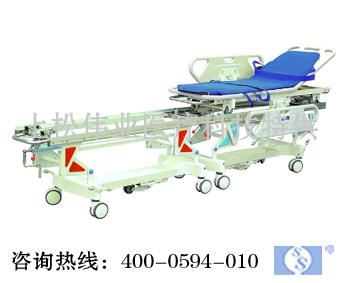 3、ABS工程塑料一次注塑床面,背部可氣動升降,床面底部安裝四個靜音滑輪,兩側(cè)配有ABS工程塑料一次注塑升降式護(hù)攔;