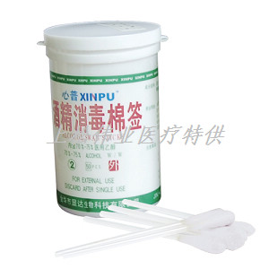 由70%-75%醫(yī)用乙醇浸泡醫(yī)用脫脂棉棒制成。