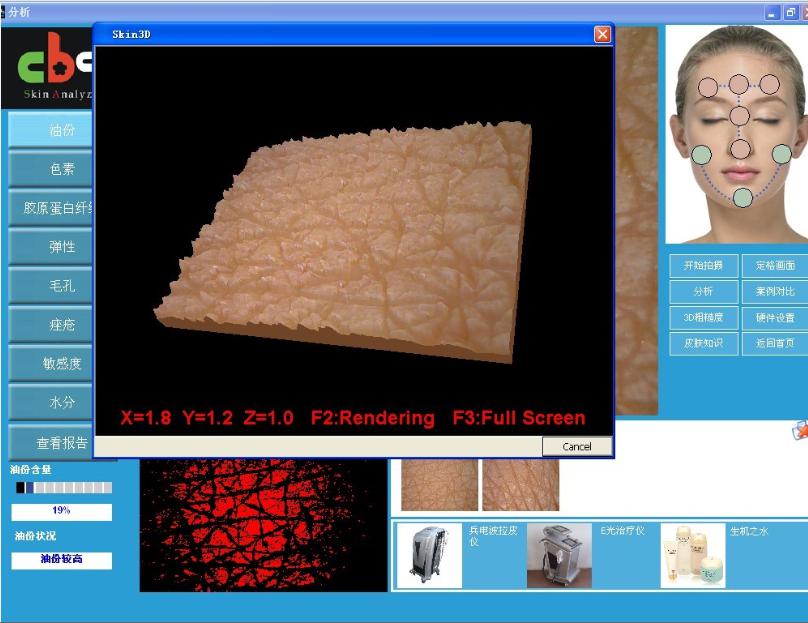 5、瞬間生成病人的皮膚3D圖,可清晰判別皮膚的粗造度。