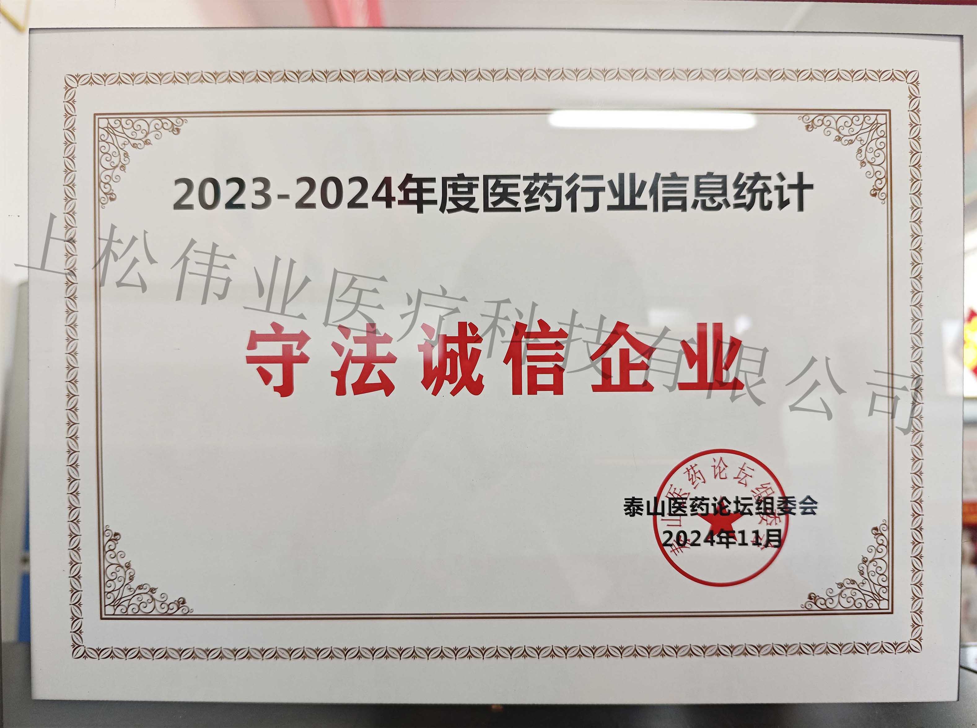 上松偉業(yè)再次榮獲2023—2024年度“醫(yī)藥行業(yè)守法誠信企業(yè)”