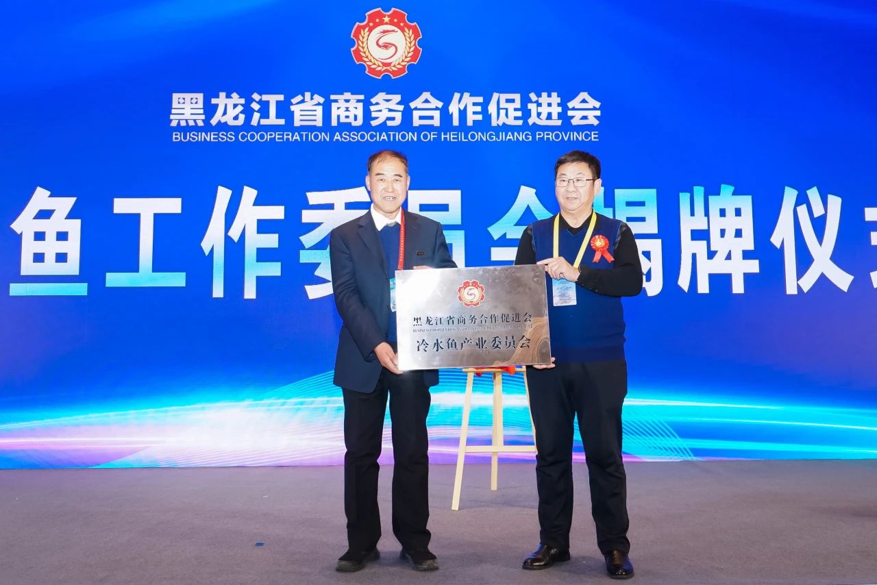 省商貿工會主席、省商促會執(zhí)行會長申志國,興凱湖大白魚研究中心主任張曉光,撫遠東龍鱘業(yè)有限公司董事長李國志共同為省商促會冷水魚產業(yè)工作委員會揭牌。