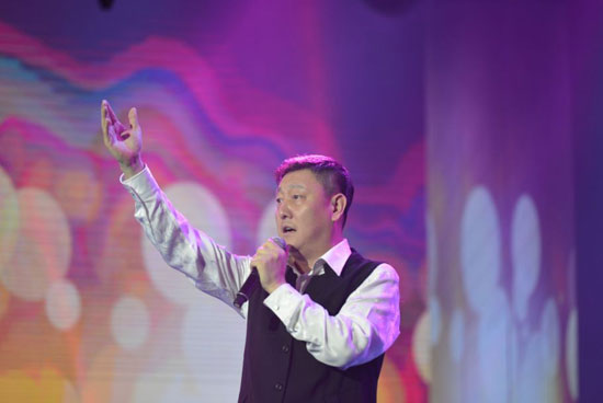 【李密】今天,我們將大愛匯聚成一股氣吞山河的力量,共建一條和諧共贏的健康之路。這份力量鼓舞的不僅僅是我們?cè)谧拿恳晃唤】诞a(chǎn)業(yè)人,也不僅僅是之前的每一位表演嘉賓,同樣鼓舞了一位為大家所熟悉的老朋友,他的歌聲就像我們心中那股始終熊熊燃燒的信念和斗志一般,慷慨激昂、奮發(fā)向上!掌聲有請(qǐng)著名歌唱家:韓磊?。?8:57)