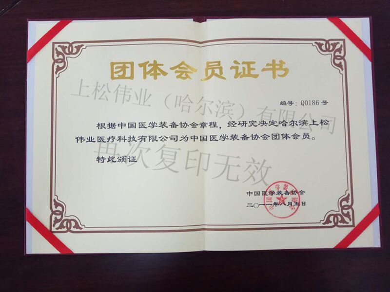 中國醫(yī)學(xué)裝備協(xié)會團(tuán)體會員證書