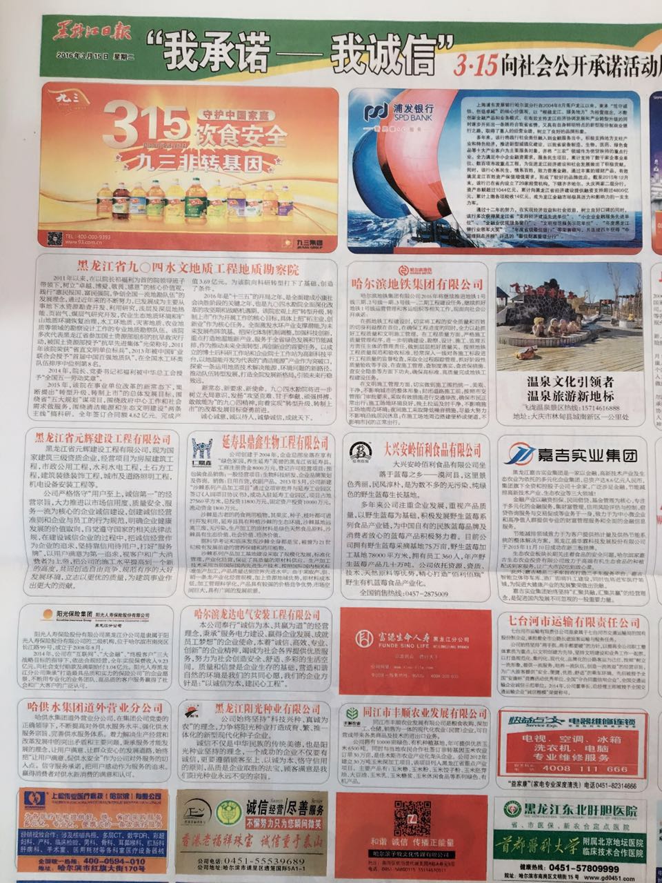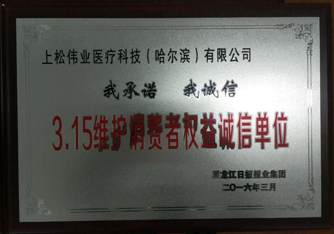 2016年3月15日由黑龍江日報主辦的315“我承諾、我誠信”活動被授予《315維護消費者權(quán)益誠信單位》
