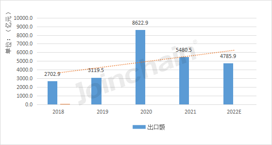 圖1 2018-2022年中國醫(yī)療器械出口貿(mào)易總額及增速